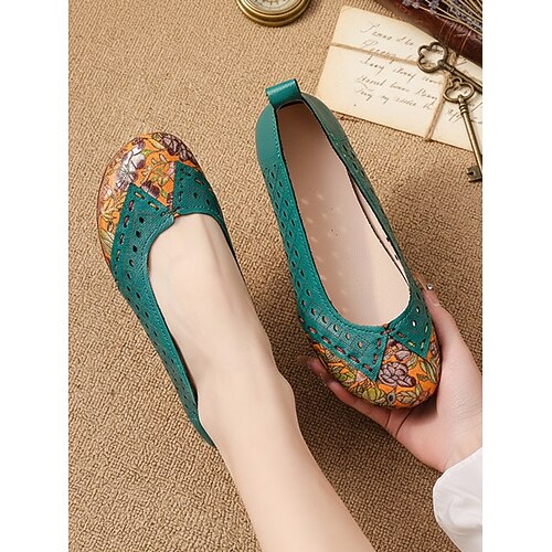 ballerine da donna con stampa floreale bianca – tomaia in morbida pelle, scarpe con punta tonda di ispirazione vintage, per abbigliamento casual, passeggiate, viaggi e uso quotidiano