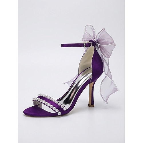 sandali da donna con tacco alto e cinturino alla caviglia in perle argentate, eleganti scarpe da sposa per matrimoni in città
