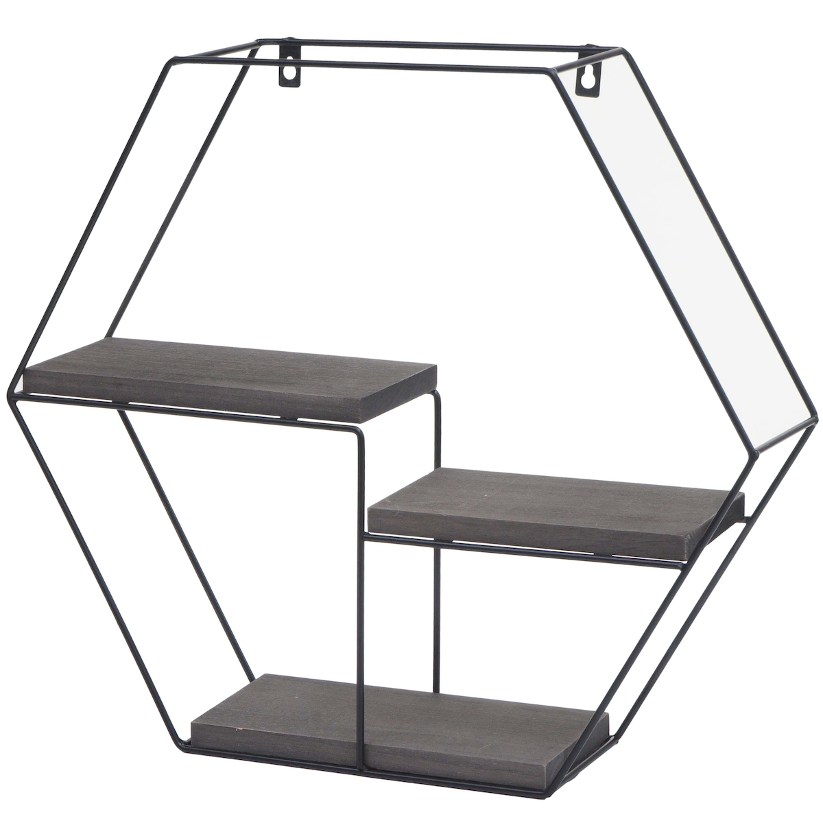 Mendler Wandregal HWC-K76, Hängeregal Schweberegal Regal, 3 Regalböden Metall Massiv-Holz Industrial 43x49x11cm ~ dunkelgrau