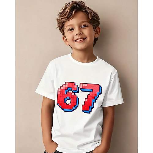 Cotone Bambini Ragazzi Nero Bianco Grafico Gergo divertente 67 Maglietta Blusa Girocollo Manica Corta All'aperto Abbigliamento Quotidiano Moda Streetwear Designer Estate