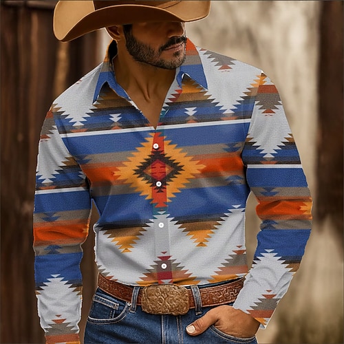 Per uomo Azteco Motivo Geometrico Etnico Camicia Camicia Western Camicia da cowboy Manica Lunga Vintage Retrò All'aperto Casuale Abbigliamento da lavoro Primavera Autunno Collo ripiegato Stampa 3D