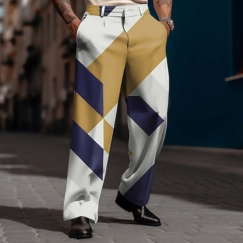 Per uomo Blocco di colori Motivo Geometrico Pantaloni Pantaloni Eleganti Pantaloni da Abito Misura del girovita medio Casual Business Casual All'aperto Abbigliamento Quotidiano Pantaloni eleganti con