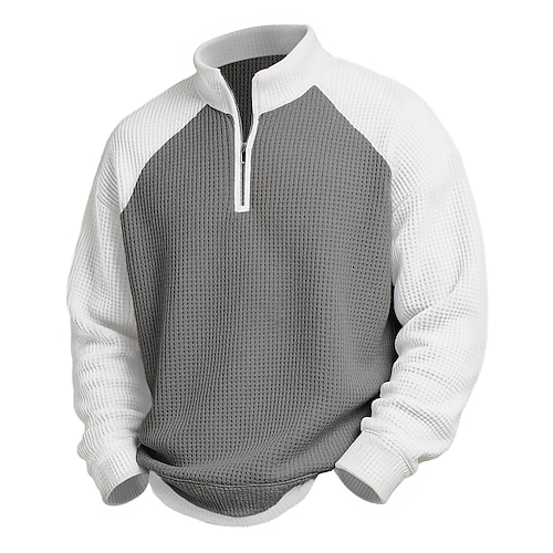 Per uomo Polo Polo con zip a un quarto Abbigliamento quotidiano Data Zip a un quarto Manica Lunga Moda Essenziale Semplice Jacquard Cerniera Autunno Inverno Vestibilità regolare Nero Azzurro cielo