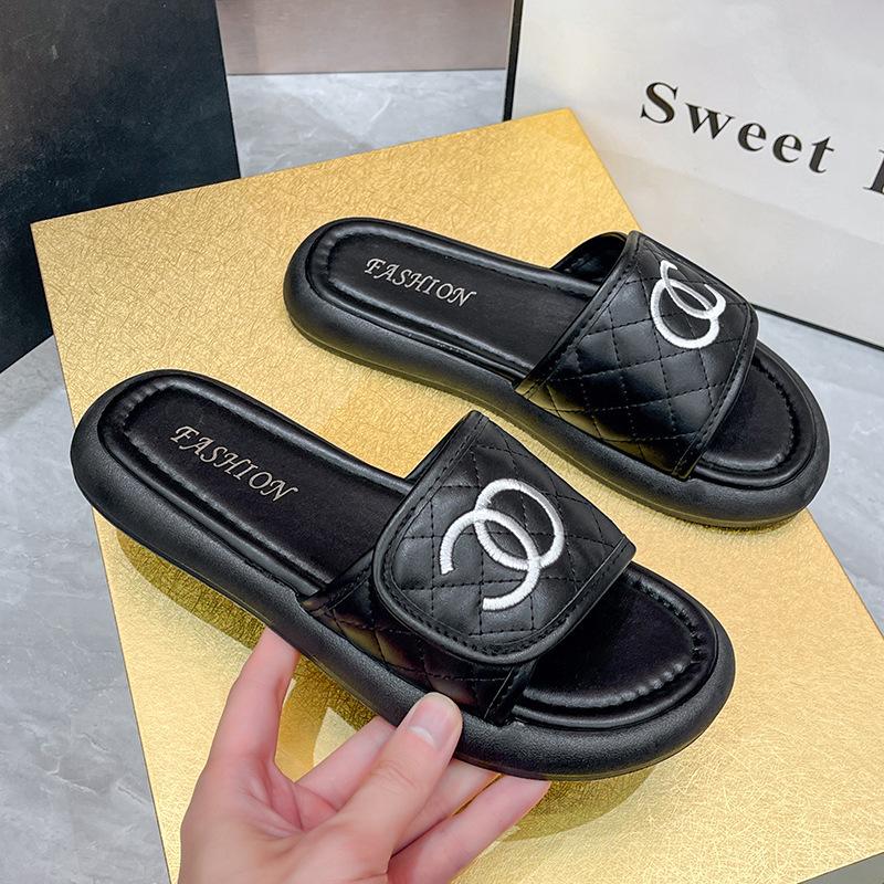 Slippers met ronde kop en muffinbodem met één karakter, damesmode buitensandalen cm zwart