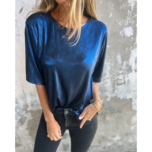 Per donna Blusa Tinta unica Elegante Casual Manica Corta Asimmetrico Top Regolari Quotidiano Paillettes Nero Bianco Viola Oro Verde Estate Primavera