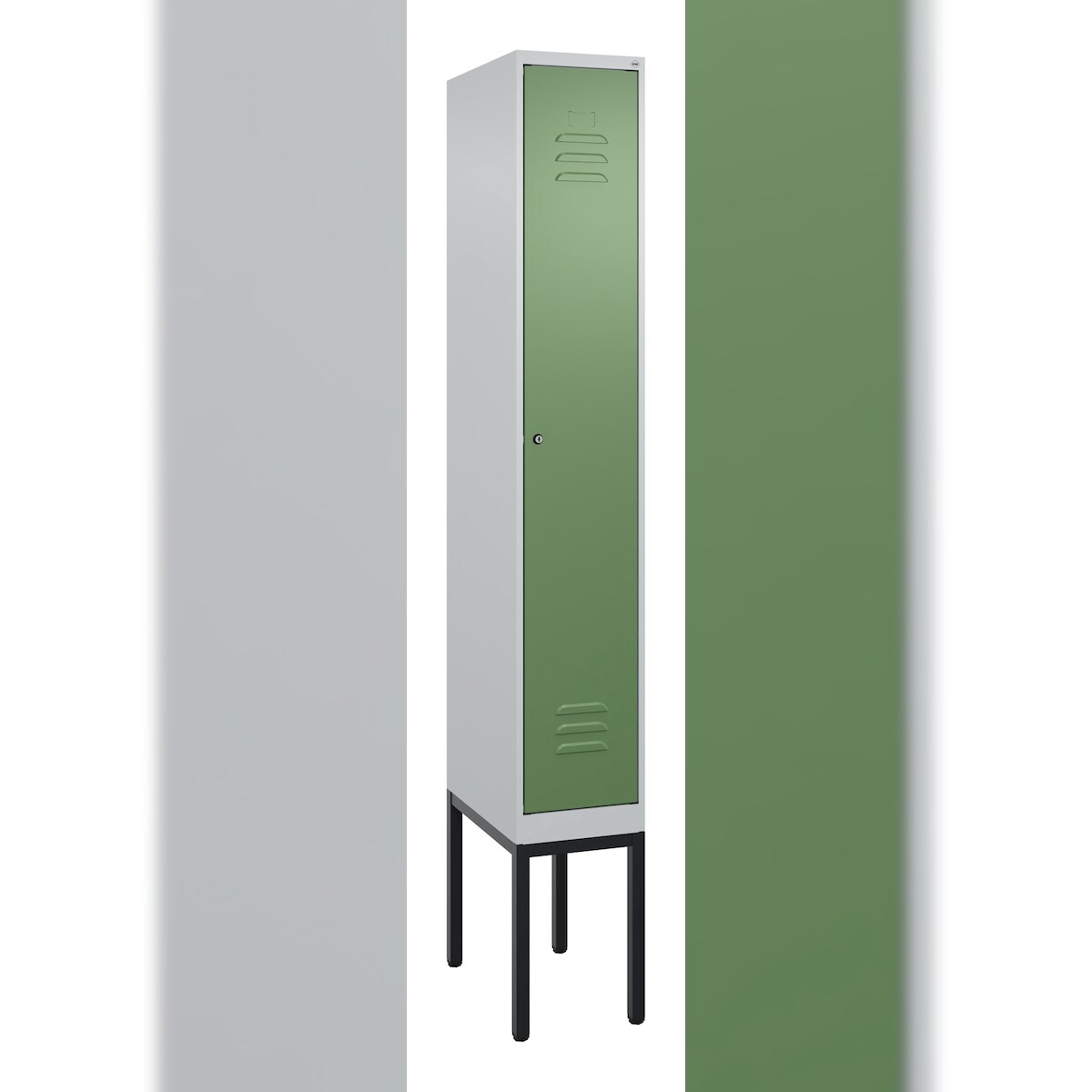 C+P Spind Classic PLUS, Gestell, 1 Abteil, HxBxT 212x30x50cm, Zylinderschloss, Hellgrau/Resedagrün von PROREGAL