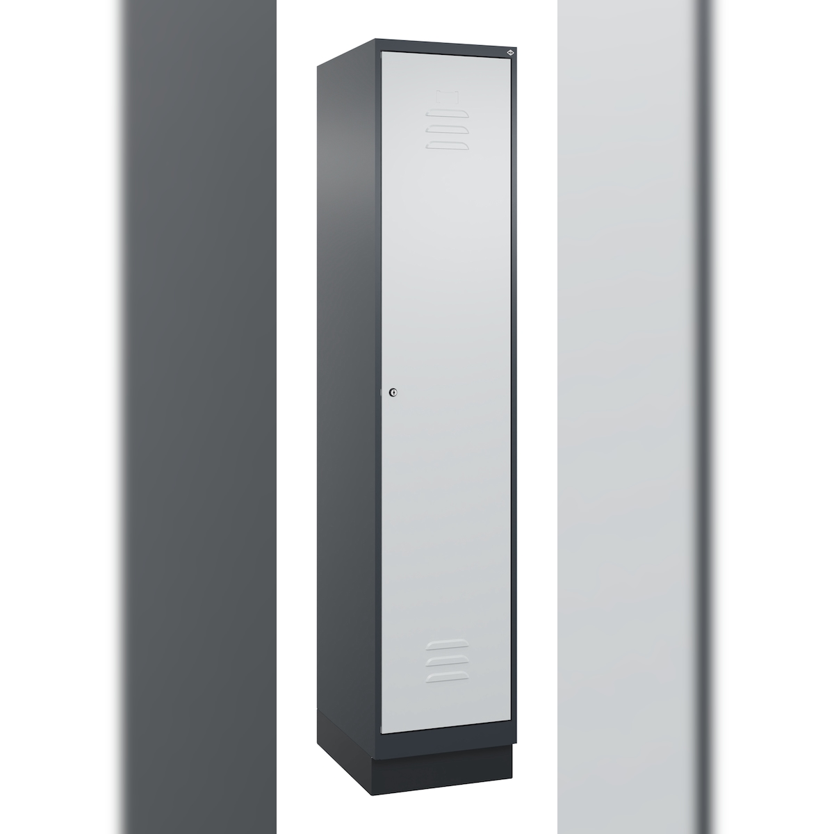 C+P Spind Classic PLUS, Sockel, 1 Abteil, HxBxT 195x25x50cm, Zylinderschloss, Hellgrau/Hellgrau von PROREGAL