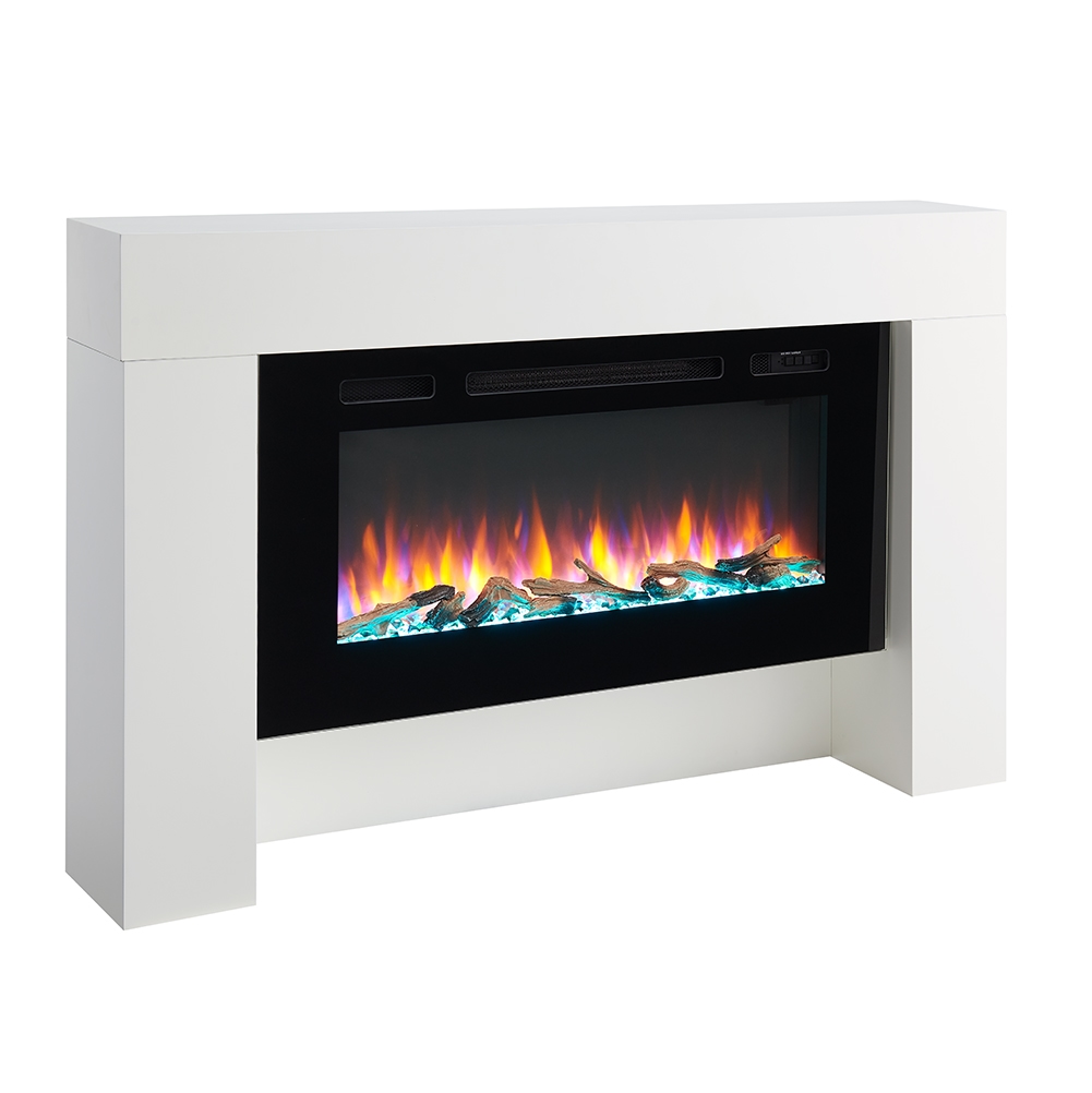 RICHEN Elektrokamin Herkules - Elektrischer Standkamin (2000W, LED-Beleuchtung, 3-D Flammeneffekt, Fernbedienung) - Weiß