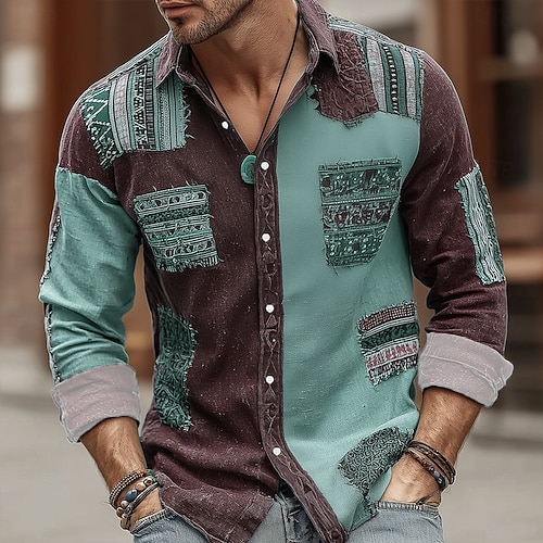 Per uomo Geometrico Blocco di colori Patchwork Camicia Camicia con Bottoni Manica Lunga Vintage Retrò All'aperto Quotidiano Abbigliamento casual alla moda Primavera Autunno Collo ripiegato Stampa 3D