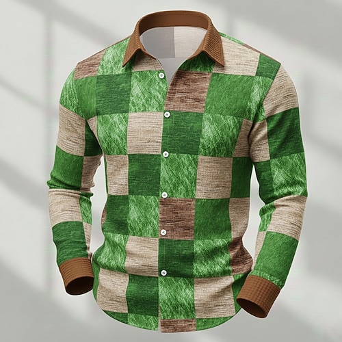 Per uomo Geometrico Blocco di colori Patchwork Camicia Camicia a nido d'ape Camicia casual Manica Lunga Moda Casual Abbigliamento Quotidiano Ferie Estate Primavera Collo ripiegato Stampa 3D