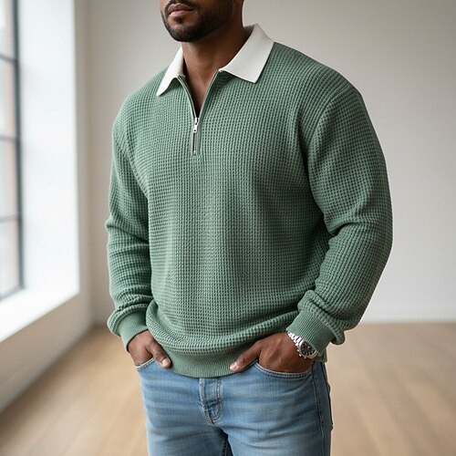 Per uomo Magliette Polo a Nido d'Ape Testurizzato Casuale Streetwear Manica Lunga Moda Tempo libero Blocco di colori Testurizzato Con zip Autunno Primavera Autunno Autunno Inverno Vestibilit