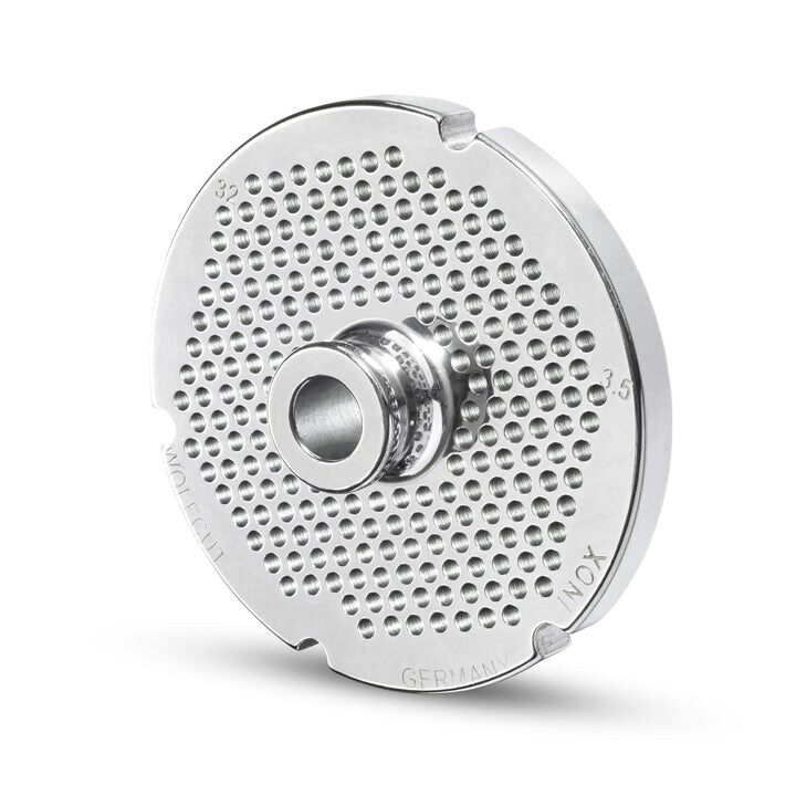 WOLFCUT Fleischwolfscheibe mit Nabe und 4 Nuten INOX-Stahl Größe 32 - 3,5 mm Bohrung kompatibel mit BIZERBA FW-N32 / ALEXANDERWERK 32 / OMEGA TH32