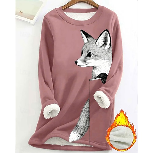 Per donna Felpa Pullover Animale Moda Essenziale Casual Manica Lunga Girocollo Top lunghi Streetwear Abbigliamento Quotidiano Casuale Stampato Foderato in pile Nero Giallo Rosa Rosa scuro Blu Autunno