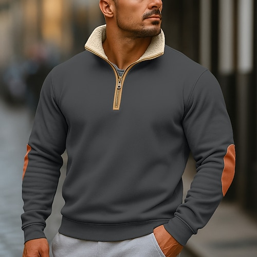 Per uomo Maglia Felpa in pile Felpa con zip corta Blu denim Nero Blu marino Grigio scuro Mezza zip Blocco di colori Patchwork Sport Outdoor Quotidiano Ferie Poliestere Streetwear Essenziale Casual