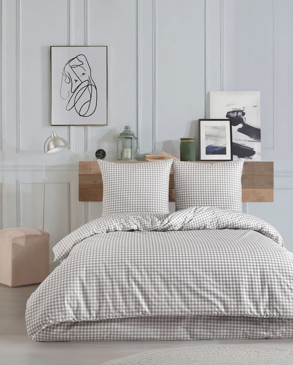 Sensei Maison Parure de lit 2 taies rectangles coton tencel Gris Perle 260x240 cm