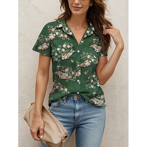Pasqua Per donna Camicia Floreale Grafico Animale Casual Manica Corta Ad aletta Colletto a Camicia Top lunghi Quotidiano Verde Estate Primavera