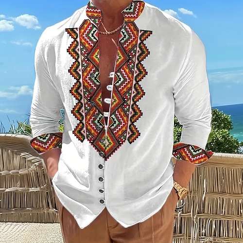 Per uomo Geometrico Etnico Cultura indiana Camicia Camicia con colletto alla coreana Manica Lunga Vintage Retrò Vacanza Abbigliamento quotidiano Uscire Primavera Autunno Collo alla coreana Colletto