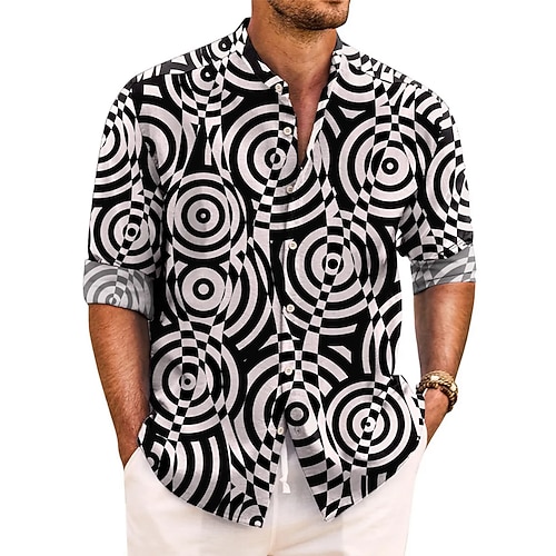 Per uomo Geometrico Cerchio Arte astratta Camicia Camicia con colletto alla coreana Manica Lunga Moda Casual Abbigliamento Quotidiano Ferie Primavera Autunno Collo alla coreana Colletto alla coreana