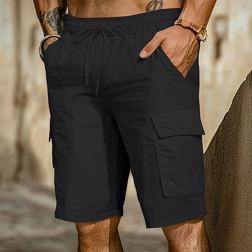Per uomo Pantaloncini cargo Shorts Shorts di Lino Pantaloncini Estivi Shorts da Spiaggia Coulisse Elastico in vita Multi-tasche Semplice Comodità Traspirante Lunghezza al ginocchio All'aperto