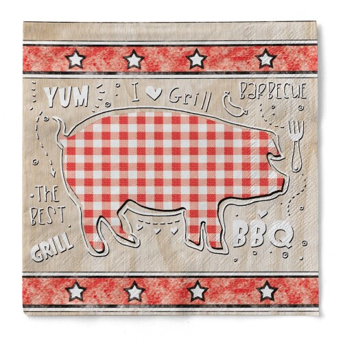 Sovie HOME Serviette BBQ-Grillfest in Rot-Beige aus Tissue 33 x 33 cm, 20 Stück - Grillen Barbecue Rind Karo Amerikanisch Sterne Sommer