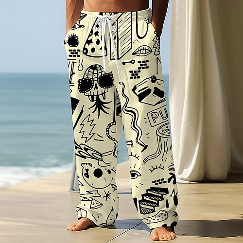 Per uomo Figura stilizzata Pantaloni Pantaloni Larghi Pantaloni casual Misura del girovita medio Vintage Retrò All'aperto Vacanza Abbigliamento casual alla moda Coulisse elastica in vita Pantaloni