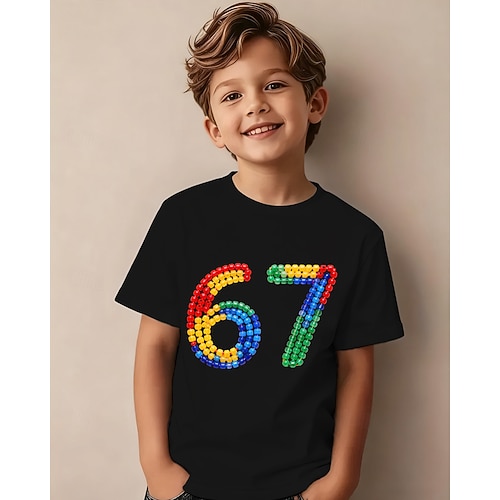 Cotone Bambini Ragazzi Nero Grafico Gergo divertente 67 Maglietta Blusa Girocollo Manica Corta All'aperto Abbigliamento Quotidiano Moda Streetwear Designer Stampato Estate