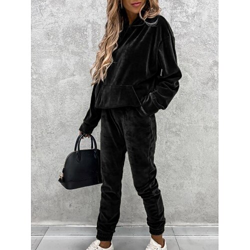 Per donna Moda Streetwear Set di Pantaloni Bolero Top Manica Lunga Con Cappuccio Tinta unica All'aperto Casuale Quotidiano Nero Rosa Rosso Autunno Vestibilità regolare