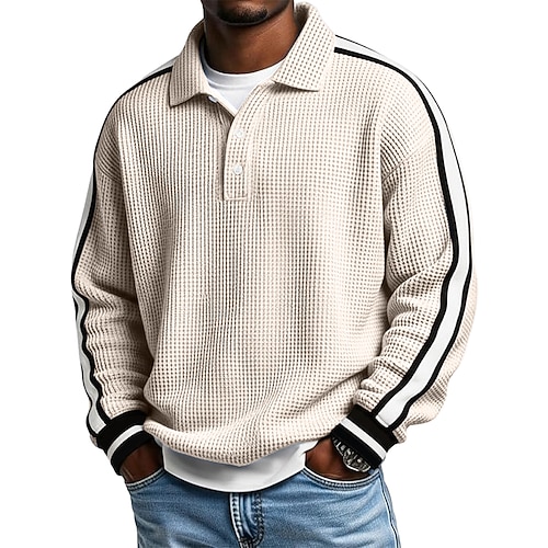 Per uomo Geometrico Magliette Polo a Nido d'Ape Manica Lunga Magliette polo Camicie con Colletto Business Casual Affari Abbigliamento da lavoro Abbigliamento quotidiano Bottoni Primavera Autunno