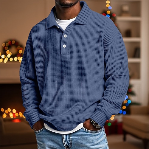 Per uomo Magliette Polo a Nido d'Ape Polo Formale Affari Colletto Polo a Coste Manica Lunga Moda Tinta unica Bottoni Puro Autunno Primavera Autunno Vestibilità comoda Nero Verde Chiaro Verde Blu