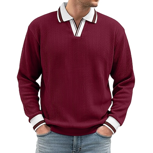 Per uomo POLO polo da golf Strada Attività commerciale Collo ripiegabile Collo a polo a costine Manica lunga Di tendenza Essenziale Tinta unica Collage Tasche Autunno Inverno Multistagione Standard