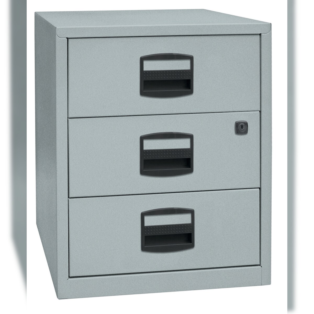 Bisley Home Beistellschrank mit Schloss aus Stahlblech, 2 Universal-Schubladen + 1 Hängeregistratur-Schublade einbahnig abschließbar - für