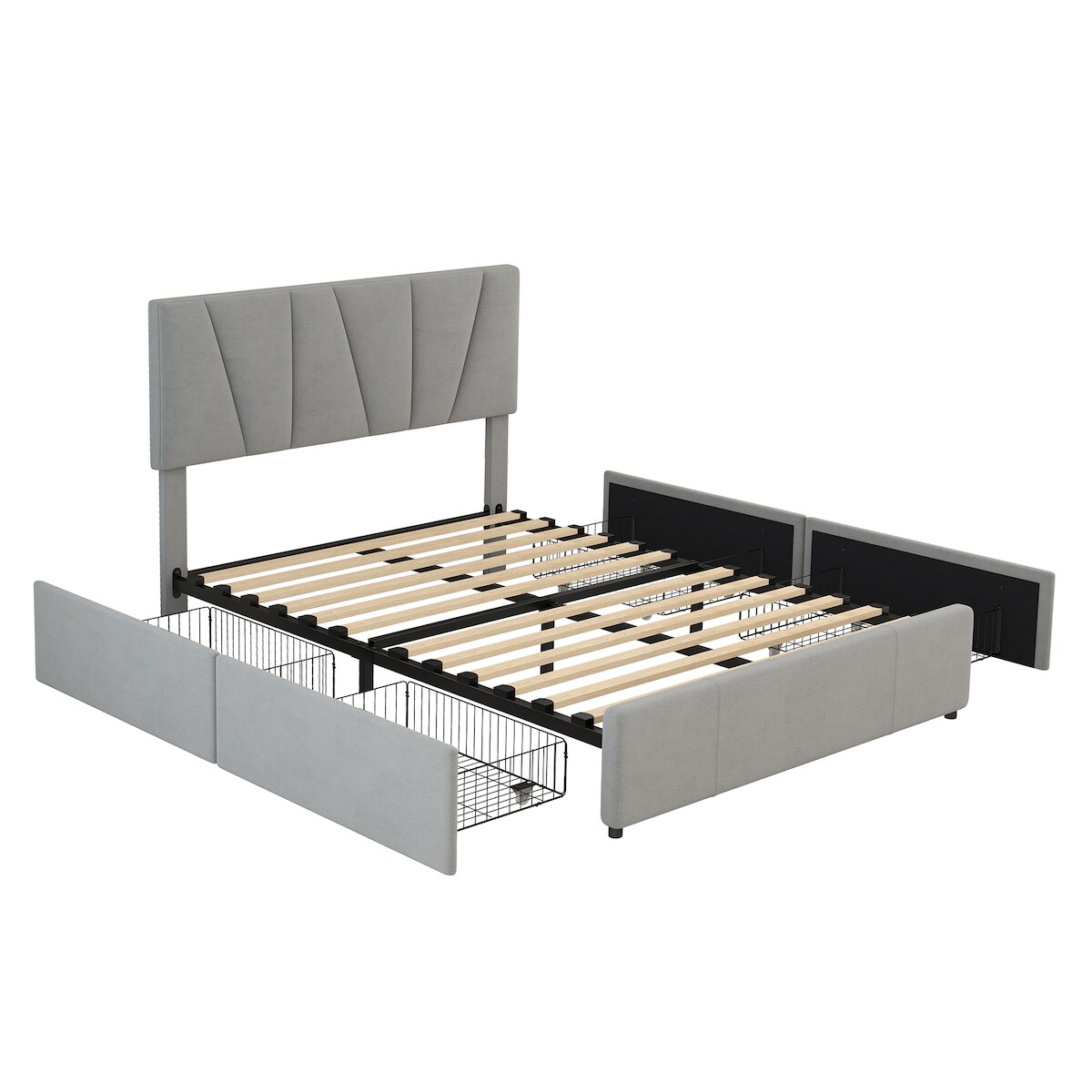 Merax Polsterbett 140x200 aus Samt Doppelbett Funktionsbett mit Höhenverstellbares Kopfteil & 4 Schubladen & Lattenrost Grau