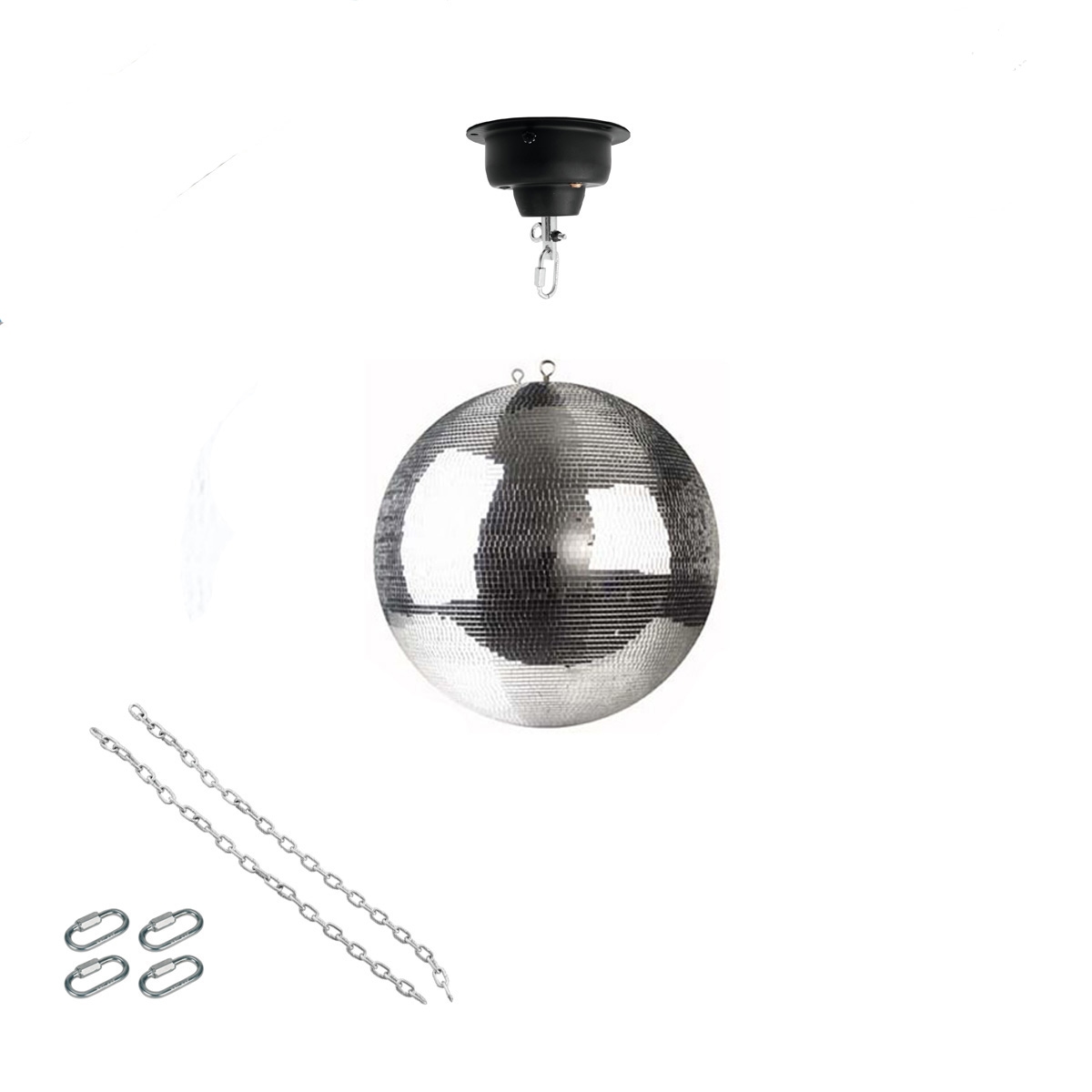 SATISFIRE Spiegelkugel Set 30cm Kugel PREMIUM + Motor MBM-404, 2 Ketten, 4 Kettenglieder
