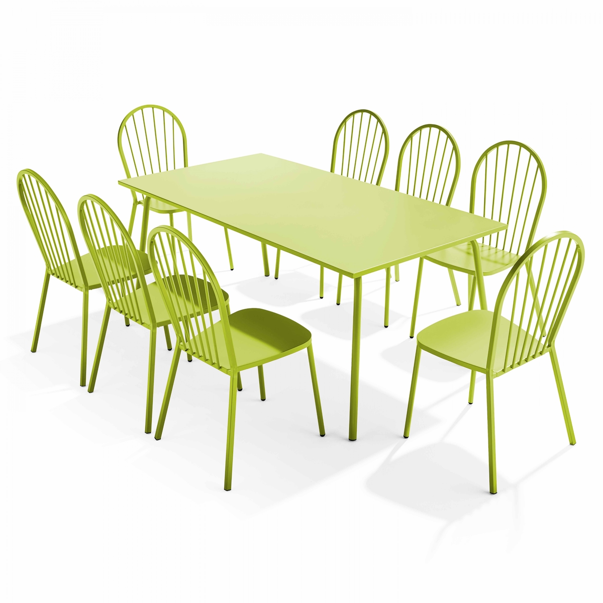 Oviala Business Set aus Terrassentisch und 8 Bistrostühlen aus grünem Stahl
