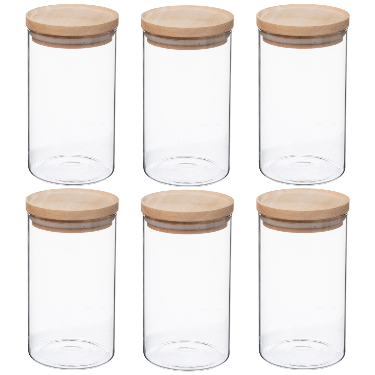 Wellhome - Set mit 6 Glasbehältern und Holzdeckel, 1 L in Beige