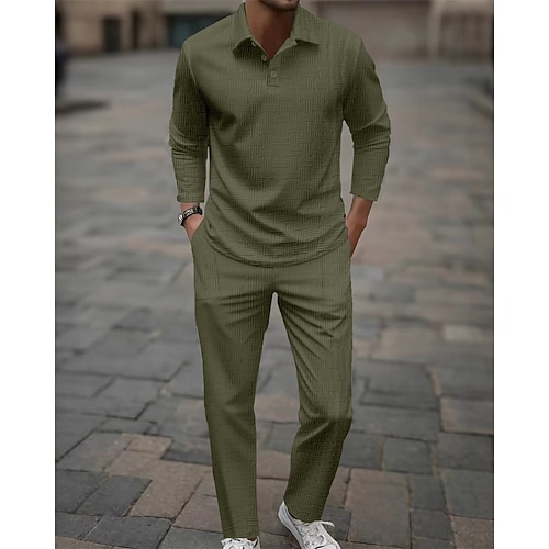 Per uomo Completi T-shirt Completi camicia e pantaloni Outfit 2 pezzi Manica Lunga Bavero Primavera Autunno Semplice Moda Casual Jacquard 2 Pezzi Vacanza Abbigliamento quotidiano Uscire Nero Bianco