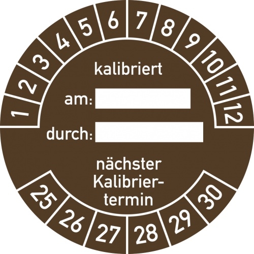 Dreifke® Prüfplakette kalibriert am: durch: nächster...2025-2030,Folie,Ø 40 mm,10 Stück/Bogen