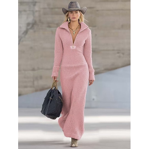 Per donna Abito maxi Abito a Tubino Casual Boho Quotidiano Ferie Semplice Manica Lunga Collo alla coreana Nero Rosa Marrone chiaro Azzurro cielo