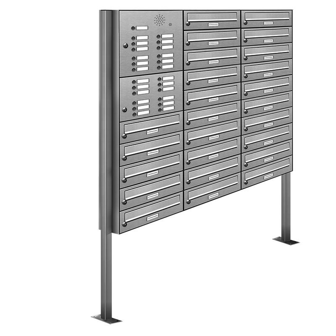 AL Briefkastensysteme 25 Fächer Premium Edelstahl Stand Briefkasten Anlage mit Klingeln, Post A4, modern, robust, wetterfest, Artikelnummer 132V25S3KS