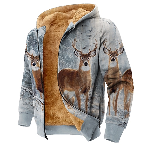Per uomo Cervo Pile Felpa con Cappuccio Giacca di pelle Felpa Classico Militare Da caccia Manica Lunga Girocollo All'aperto Campeggio Blu 3# Blu 2# Blu Con zip Autunno Inverno progettista S M L XL