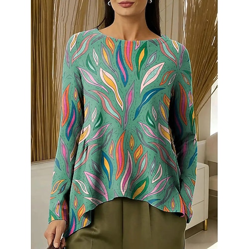 Per donna Tunica Maglietta Floreale Grafico Elegante Essenziale Classico Manica Lunga Girocollo Top lunghi Quotidiano Rosa Arancione Verde Beige Primavera Autunno Inverno