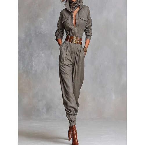 Per donna Normale Tuta Elegante Tinta unica Manica Lunga Colletto a Camicia Tasca Bottoni Quotidiano Casa Vestibilità regolare Grigio Primavera