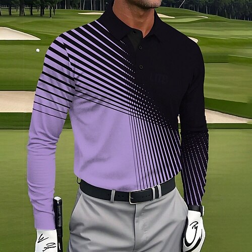Per uomo Geometrico Golf Polo Polo Sportivi Manica Lunga Magliette polo Bavero Casual Athleisure Abbigliamento quotidiano Stampa 3D Bottoni Primavera Autunno Inverno Bianco Blu Viola