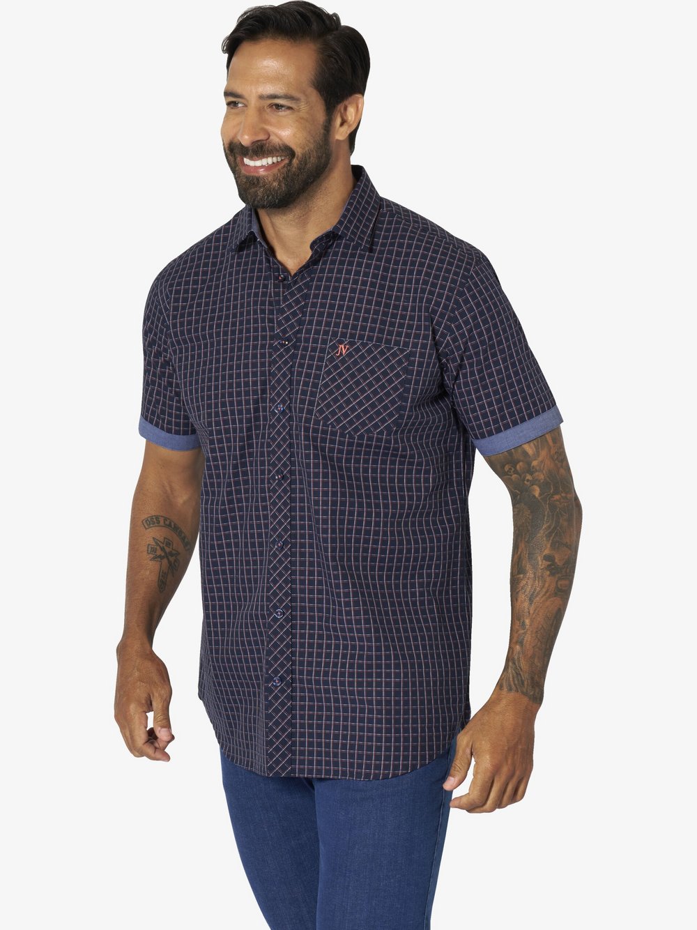 Karohemd JAN VANDERSTORM "Kurzarmhemd LEIDULF", Herren, Gr. 4XL, blau (blau kariert), Obermaterial: 100% Baumwolle CO., mehrfarbig, casual, comfort fit normal, Kurzarm, Hemden