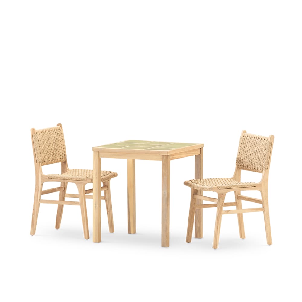 Poltrona in legno di mindi massello e tessuto écru