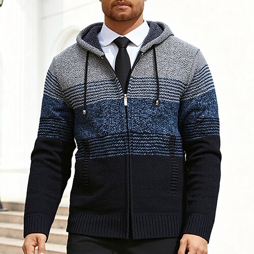 Per uomo Felpa Cardigan Maglione con Zip A Coste Maglia Top Regolari Con zip Lavorato a maglia Semplice Con Cappuccio Vacanza Moda Affari Casuale Abbigliamento Autunno Inverno Borgogna Blu marino M L