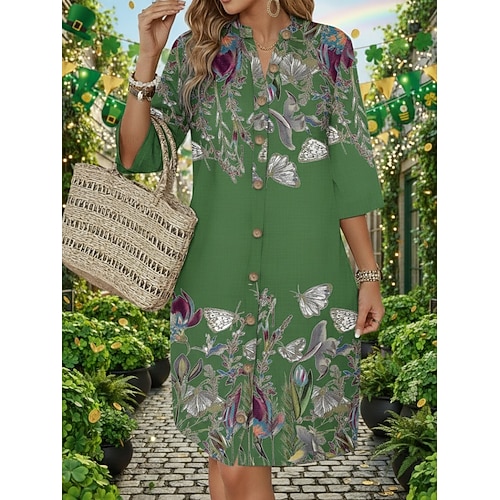 Giorno di San Patrizio Per donna Abito Lungo Maxi Abito Vestito Casual Vestito T-Shirt Moda Essenziale Moderno Quotidiano All'aperto Vacanza Vestibilità regolare Grafico Trifoglio Mezza Manica Scollo
