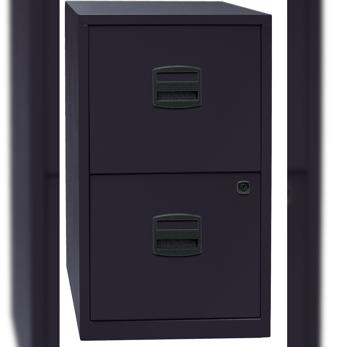 Bisley Home Hängeregistraturschrank mit Schloss aus Stahlblech, 2 Schubladen, einbahnig - Hängeregisterschrank abschließbar, Hängeregistratur für