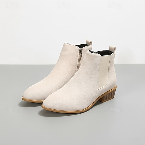 stivaletti Chelsea in pelle scamosciata da donna con cerniera laterale, stivaletti bassi con tacco a blocco slip-on per outfit autunnali casual, passeggiate all'aperto e abbigliamento quotidiano