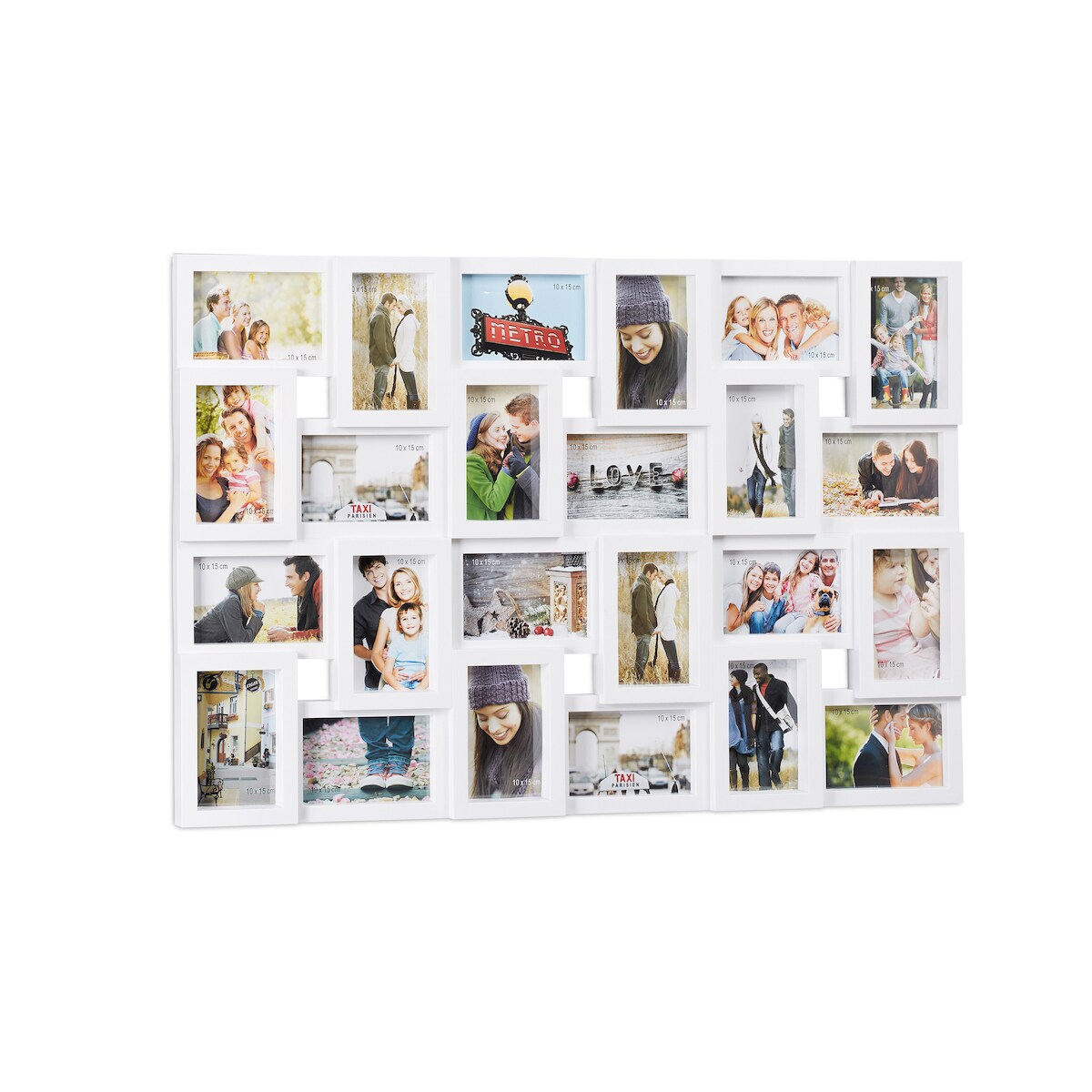 Relaxdays XXL Bilderrahmen Collagen für 24 Bilder in 10 x 15, Hoch- oder Querformat, Kunststoff, HxB 57 x 86 cm, weiß